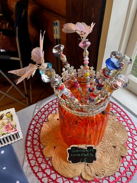 Discover Bead Folk's jewel top garden wands, designed to bring colorful whimsy and dazzling sparkle to your garden, patio, or indoor plants. Elevate your botanical displays with a touch of magic from Olympia, Washington.
