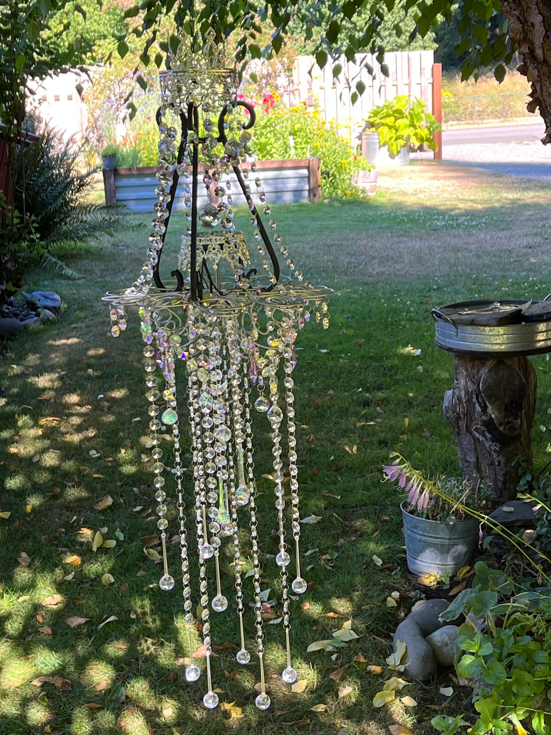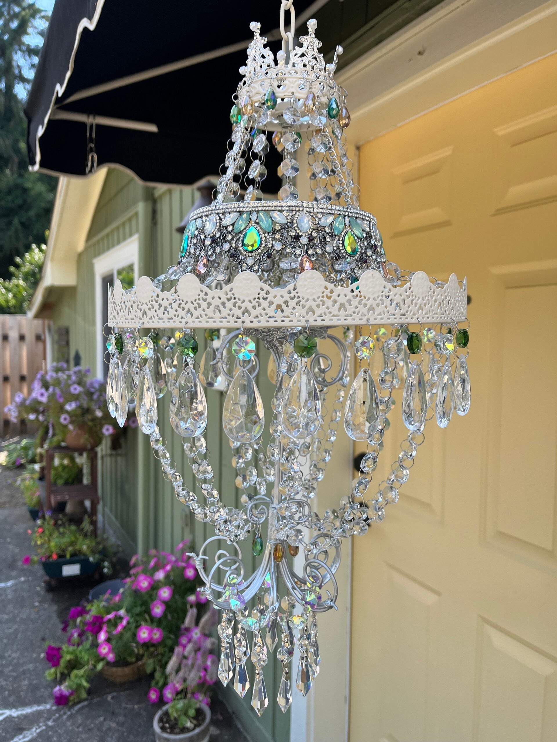 Each chandelier is custom and differently made every time, but with the same metal frame. This can also be painted any color, silver, gold, cream, etc.